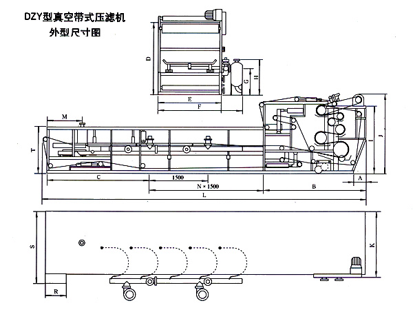 真空帶式壓濾機外形尺寸圖及技術參數(shù)1: