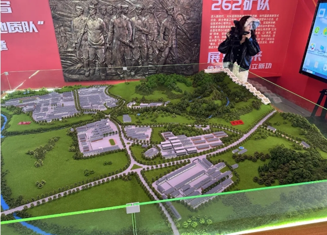 這座耗時(shí)半年打造的沉浸式沙盤,通過聲光電技術(shù)重現(xiàn)了勘探隊(duì)員"帳篷為家、羅盤指路"的奮斗歲月。作為262原址首個(gè)核地質(zhì)系統(tǒng)實(shí)景復(fù)原項(xiàng)目,其3D打印工藝精準(zhǔn)還原了24年前大隊(duì)撤離前的社區(qū)原貌。從學(xué)校、醫(yī)院、商店、職工宿舍、辦公樓等場景一應(yīng)俱全,逼真還原并呈現(xiàn)了1972年原華東262大隊(duì)進(jìn)駐雪塘村后的生活與工作場景。262隊(duì)史館自建成以來,一直致力于收集、整理和展示262大隊(duì)的歷史資料與實(shí)物,成為傳承地質(zhì)文化、開展愛國主義教育的重要基地。